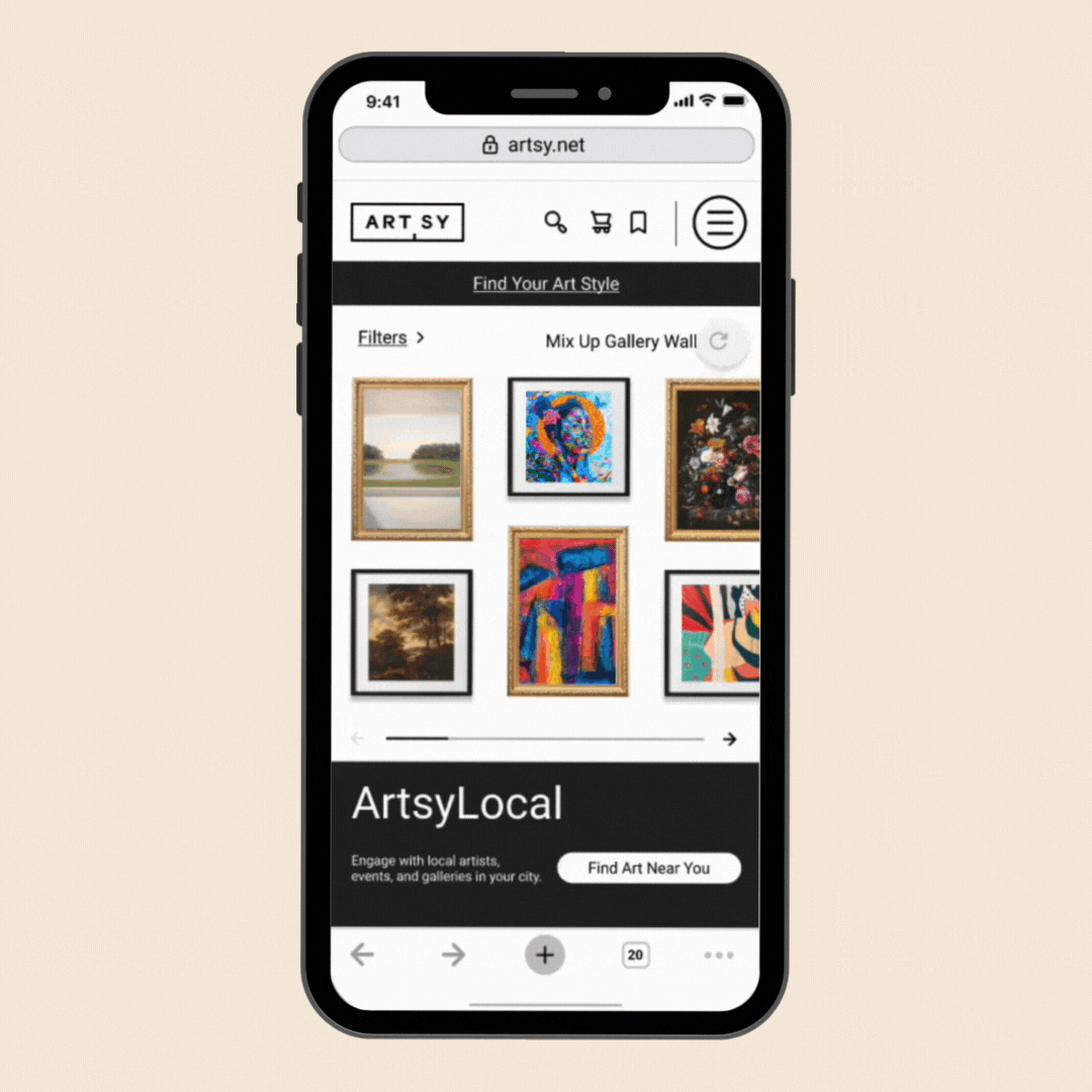 Redesign the mobile website to evolve alongside a new generation of art enthusiasts allowing them to discover all that Artsy has to offer while staying true to its original colors that current users love so much.